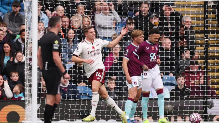 Arsenal đã kiểm soát hành trình ở phút 35, lần này là từ thế trận mở, khi một pha phản công sâu rộng kết thúc với việc Rice đánh đầu tung lưới thủ môn Burnley, Martin Dubravka.