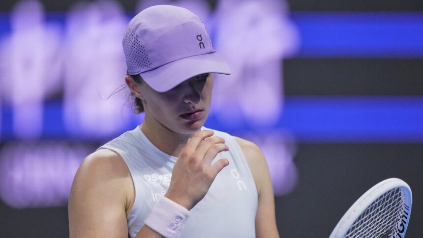 Nhà vô địch Grand Slam sáu lần SWIATEK đã lưu bốn điểm nghỉ trong trận đấu đầu tiên của cuộc thi nhưng đã chiến đấu với rắc rối trong suốt set mở đầu, bắn một loạt các cú sút chỉ dài.